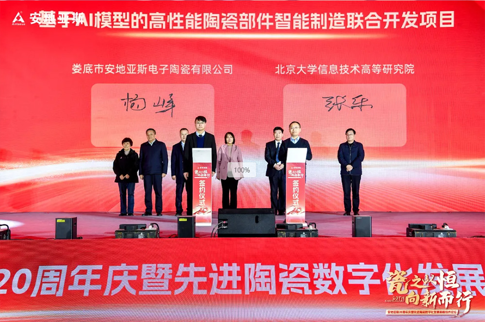 活動(dòng)中,在市領(lǐng)導(dǎo)和各位嘉賓的見(jiàn)證下,安地亞斯與北大信息技術(shù)高等研究院簽約“基于AI模型的高性能陶瓷部件智能制造聯(lián)合開發(fā)項(xiàng)目”,與世界陶瓷科學(xué)院簽約“共建高性能先進(jìn)陶瓷材料聯(lián)合實(shí)驗(yàn)室”。北大信息技術(shù)高等研究院高級(jí)研究員、智能物聯(lián)軟硬件產(chǎn)業(yè)化實(shí)驗(yàn)室主任易海明圍繞《人工智能賦能新型工業(yè)化》,世界陶瓷科學(xué)院院士、亞太材料科學(xué)院副院士林華泰圍繞《高性能氮化硅基陶瓷及零部件研究》,分享了最新的研究成果和實(shí)踐經(jīng)驗(yàn),共同探討人工智能、硅基陶瓷的最新進(jìn)展、創(chuàng)新應(yīng)用和未來(lái)趨勢(shì),讓大家受益匪淺。