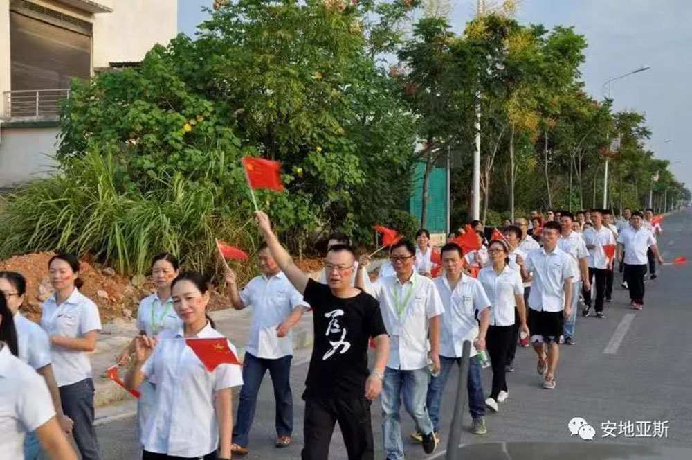 在這個舉國歡慶的日子里,安地亞斯董事長康丁華先生帶領(lǐng)我們安地亞斯的家屬,舉國旗,奏國歌,背紅旗徒步,弘揚愛國主義精神,為慶祝中國誕辰70周年,祝祖國生日快樂。